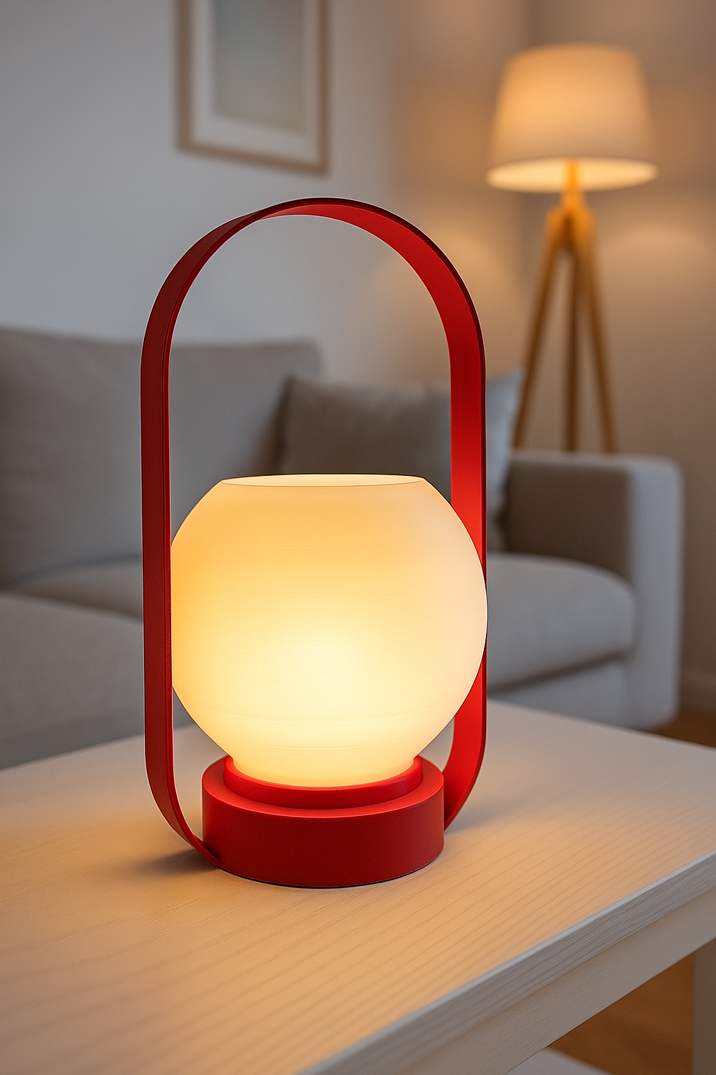 Lámpara portátil con diseño contemporáneo inspirado en el estilo nórdico. Funciona mediante conexión USB y puede colocarse en cualquier rincón del hogar, desde una mesa auxiliar hasta una terraza. Su forma minimalista y su asa superior la hacen práctica para transportar, combinando funcionalidad, elegancia y un toque moderno en la decoración.