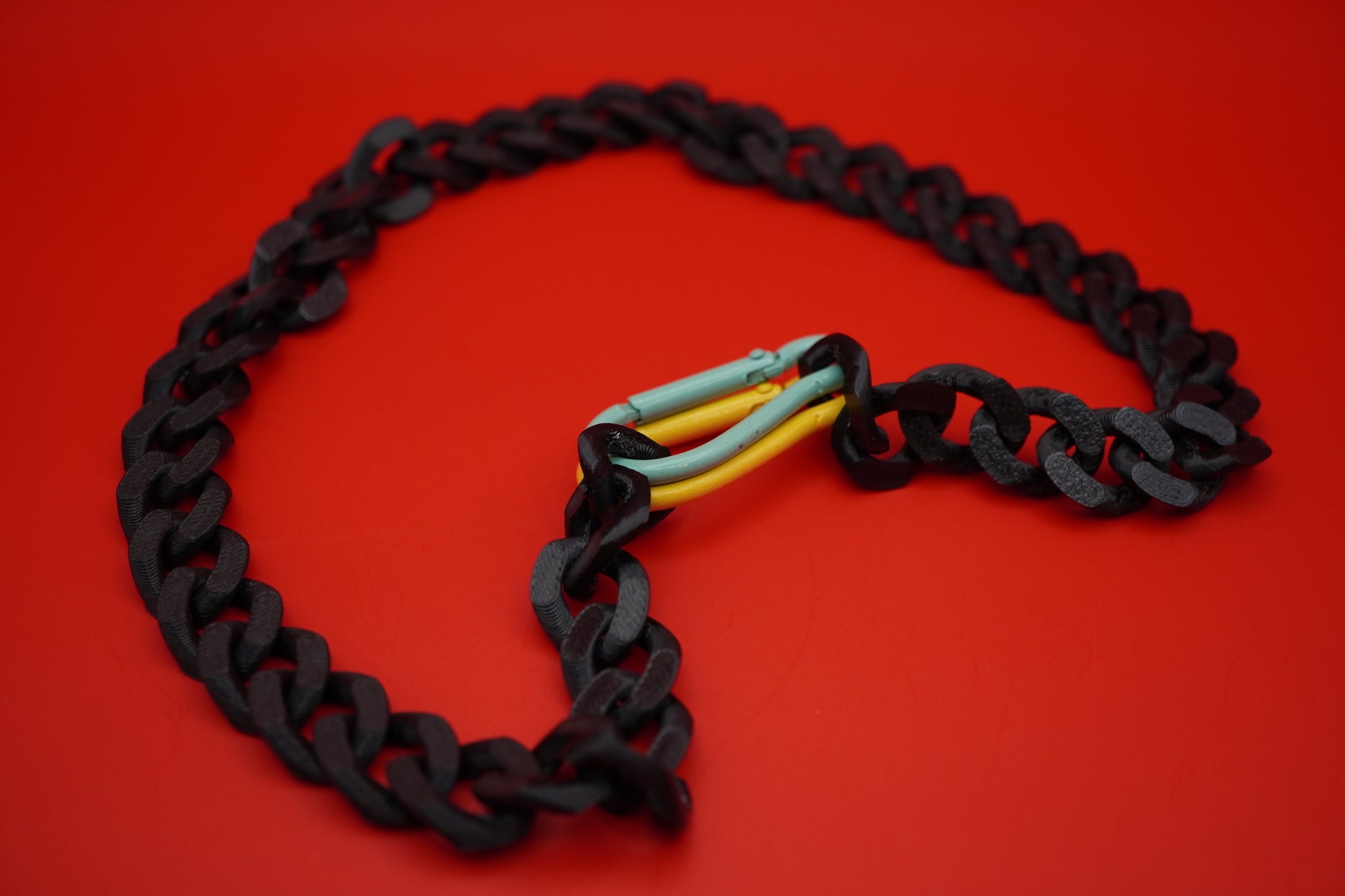 Nuestra cadena cubana chunky está impresa en 3D con PLA de alta calidad, lo que la hace ligera, moderna y resistente. Su diseño audaz y llamativo se complementa con charms y argollas metálicas que aportan un toque único y personalizable. Perfecta para quienes buscan un accesorio diferente, divertido y con estilo, ideal para usar solo o combinado con otros accesorios.