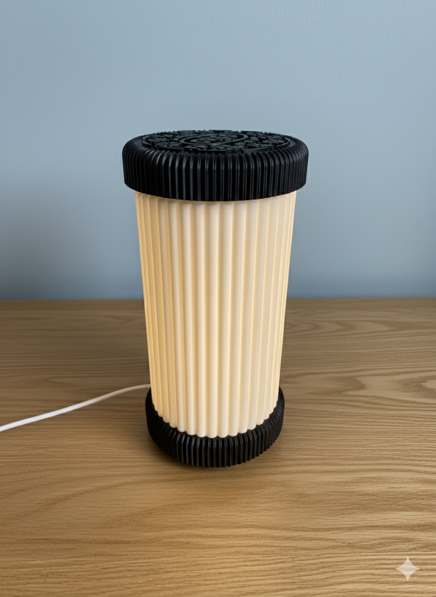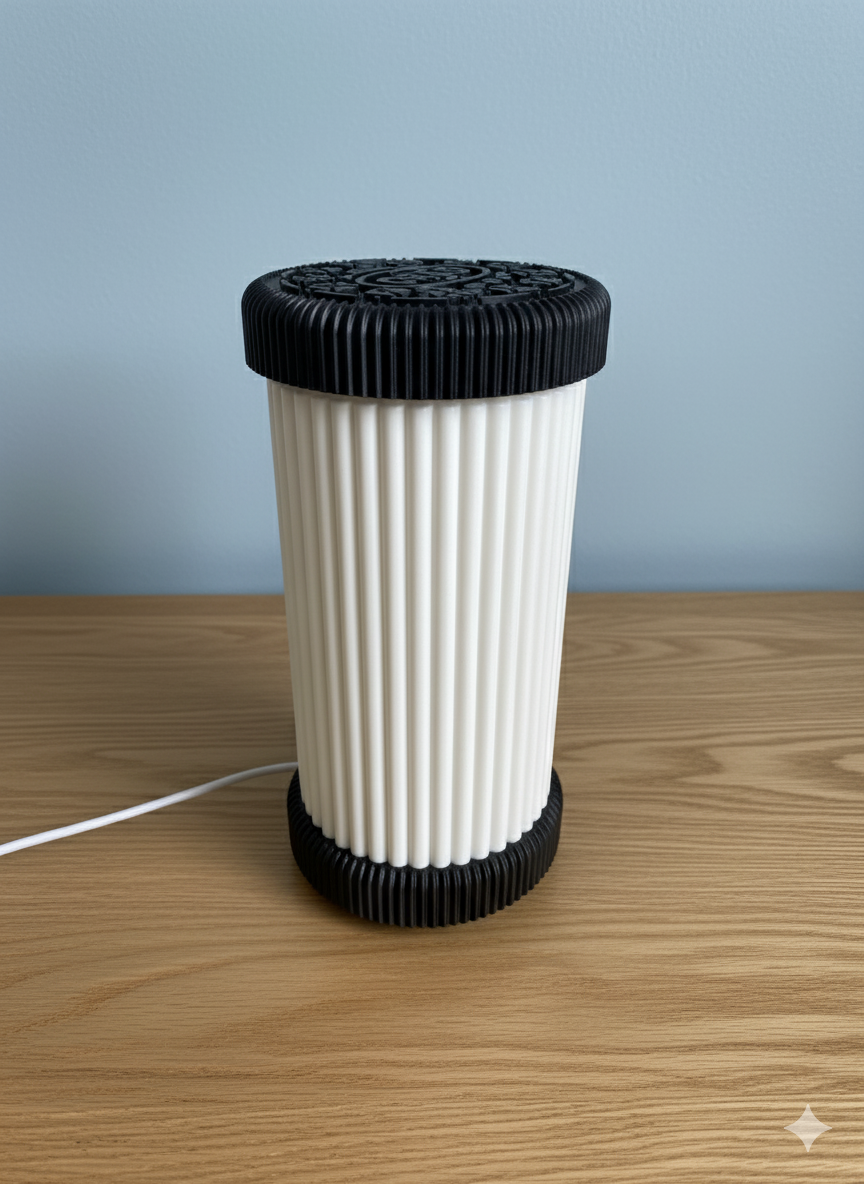 Ilumina tu espacio con un diseño único y divertido. Esta lámpara de mesa inspirada en la famosa galleta Oreo combina estilo y funcionalidad: su estructura inspirada en la icónica galleta la convierte en un accesorio decorativo original, mientras que la luz LED integrada brinda una iluminación cálida y eficiente. Perfecta para escritorios, mesas de noche o como regalo creativo para los amantes de lo dulce. Medidas: 9cm de diámetro x 19cm de altura.