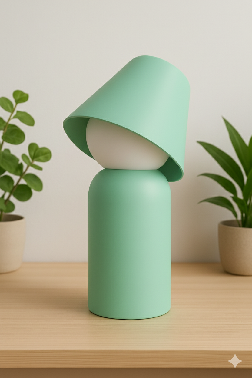 Esta lámpara de diseño versátil destaca por su ligereza y por una pantalla móvil en forma de sombrerito que puede orientarse a tu gusto, creando diferentes efectos de luz según la ocasión. De tamaño mediano, resulta ideal para colocar en un escritorio, mesa de noche o mesa auxiliar, aportando funcionalidad y un estilo encantador al espacio.